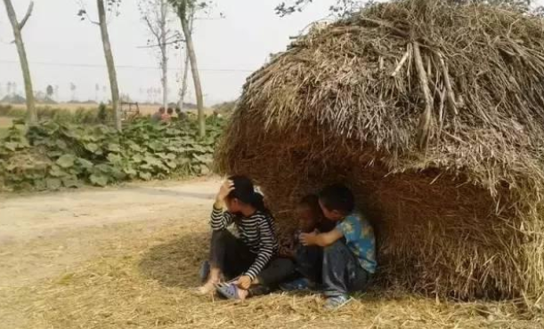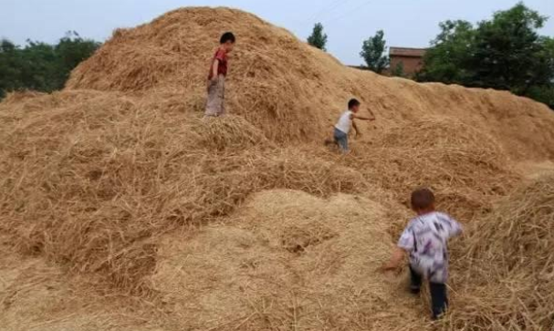 麦秸垛是孩子的玩乐天地,在里面可以尽情的翻跟头,不用担心摔着。
