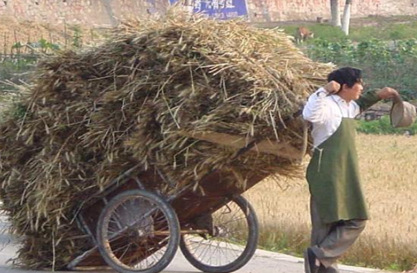 经济差的就只能像这样用平板车一车一车的拉,既费时又费力。