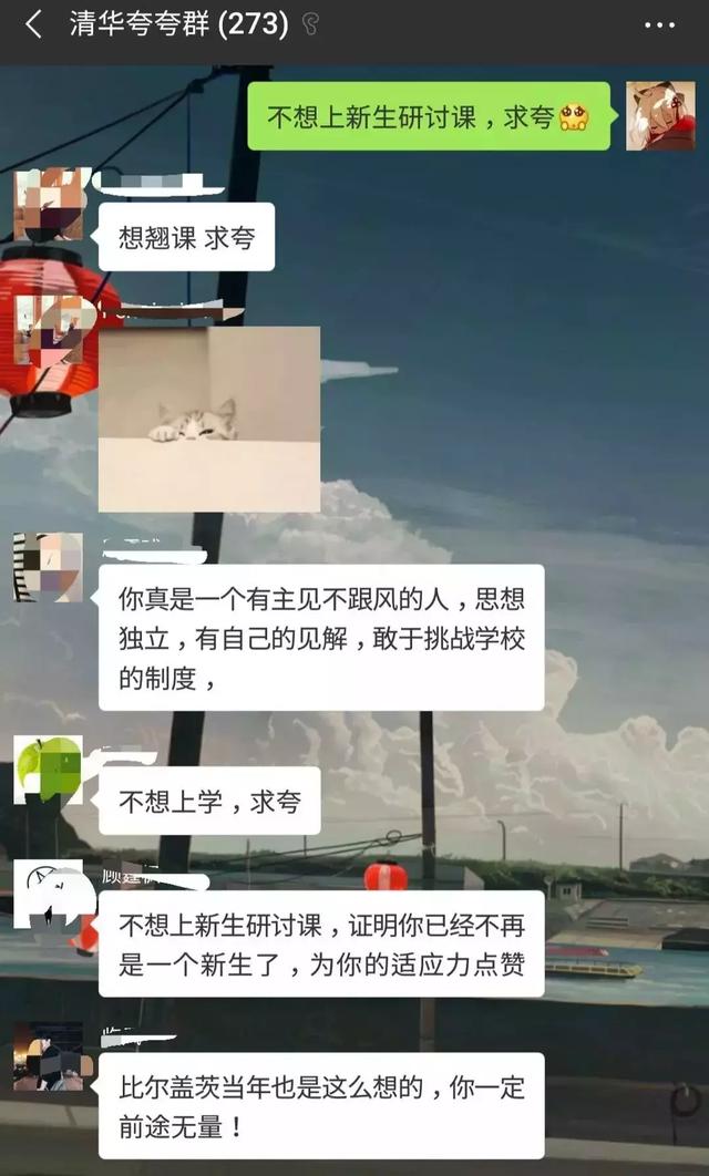 在清华夸夸群里,群友不得传递负能量、暴力、灵异恐怖的信息,面对“求夸”的请求,要积极发现他人的优点和长处,用精美简单的文字发自内心地赞美他人。