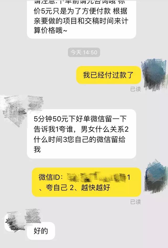 下单后,对方需要你先介绍与被夸奖人的关系,同时提供被夸奖人一定的基本信息,让夸赞更有方向。