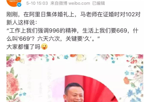 马云最近开了一次黄腔,事发现场如下: 我觉得一个成年人不会不懂“69”的含义,更不会不懂“六天六次, […]